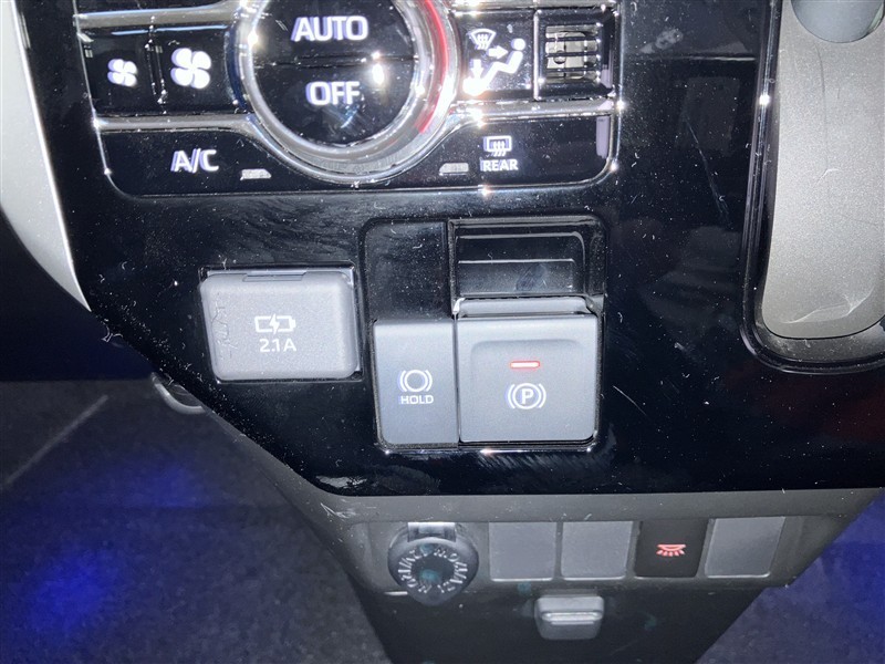 オートエアコン操作スイッチ・パーキングブレーキスイッチ・ブレーキホールドスイッチ・充電用USB端子が付いています。