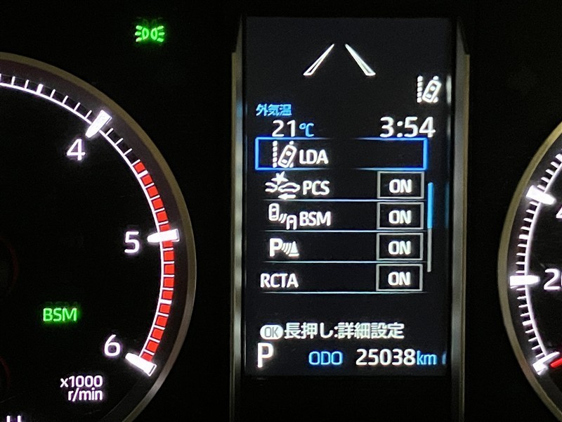 ステアリング右側にLDA(レーンディパーチャーアラート[ヨーアシスト機能付き])スイッチ・車間距離切り替えスイッチ・レーダークルーズコントロールスイッチ・オーディオスイッチが付いています。