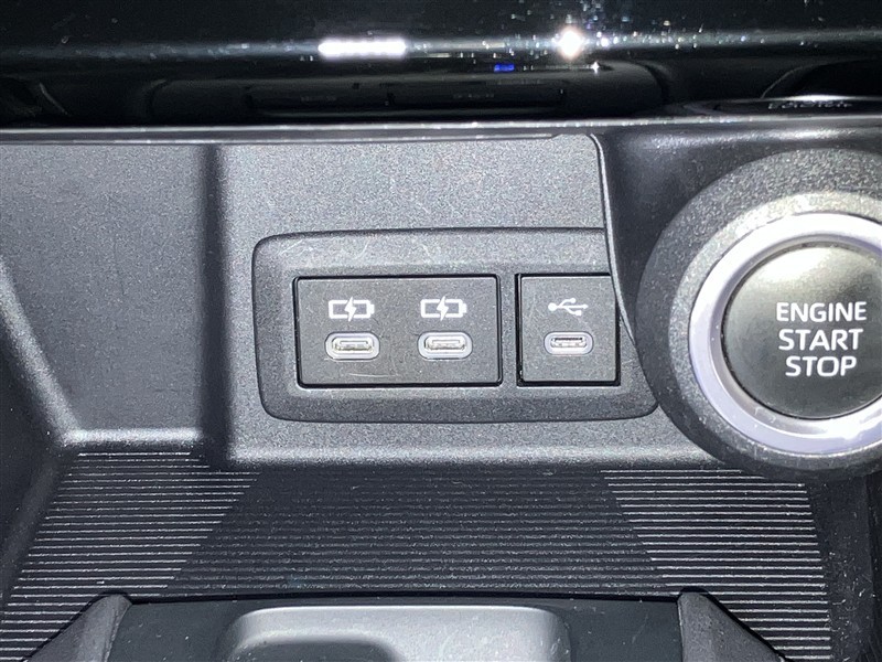 エンジン始動/停止スイッチ・充電用USB Type-C端子・メディアプレイヤー接続端子が付いています。