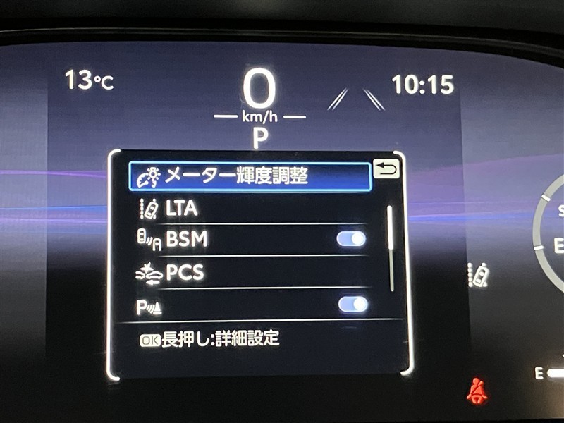 スピードメーター内のディスプレイ部に安全装備の設定状態が表示されます。