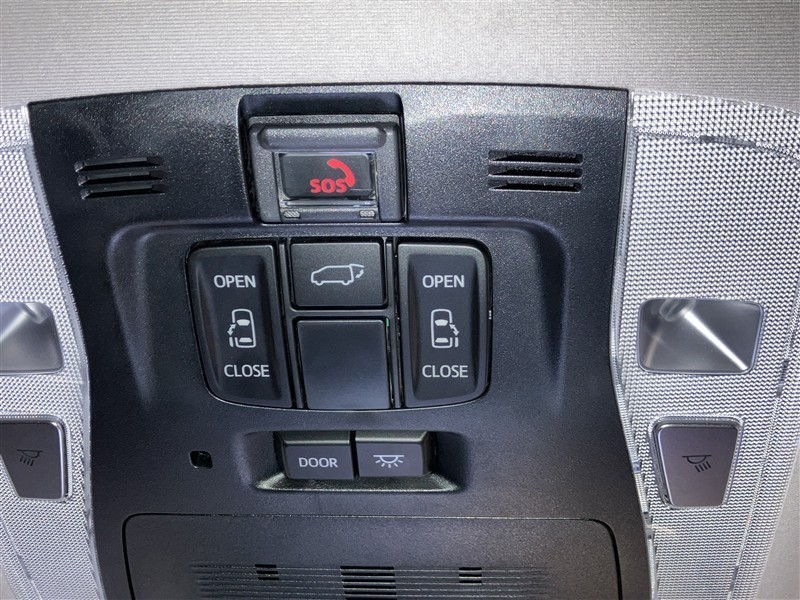 天井に両側パワースライドドア開閉スイッチ・パワーバックドア開閉スイッチ・室内灯メインスイッチ・ヘルプネットボタンが付いています。