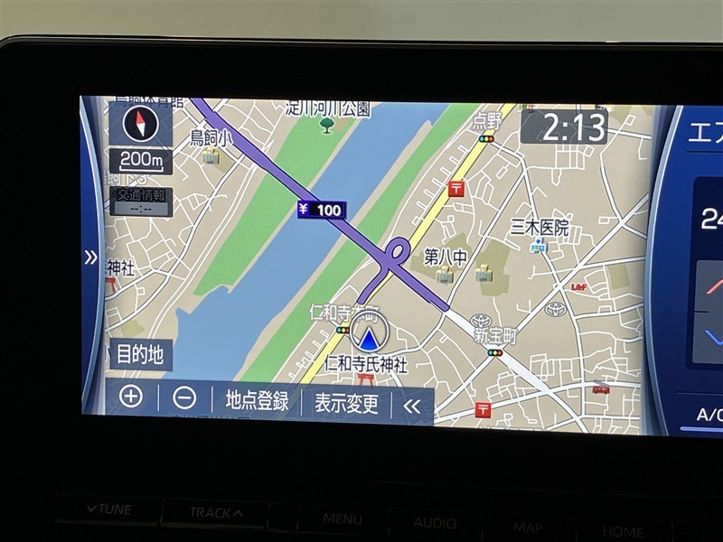 運転席周りのレイアウトをご覧ください。ナビゲーションが綺麗に装着されすっきり収まってますね!