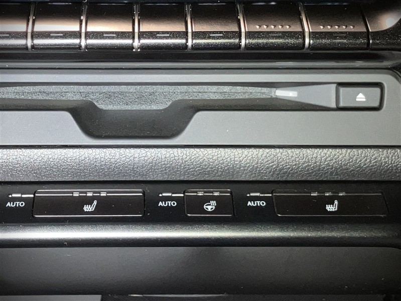 CD/DVD挿入口と運転席/助手席シートヒーター&シートベンチレータースイッチ・ステアリングヒータースイッチです。