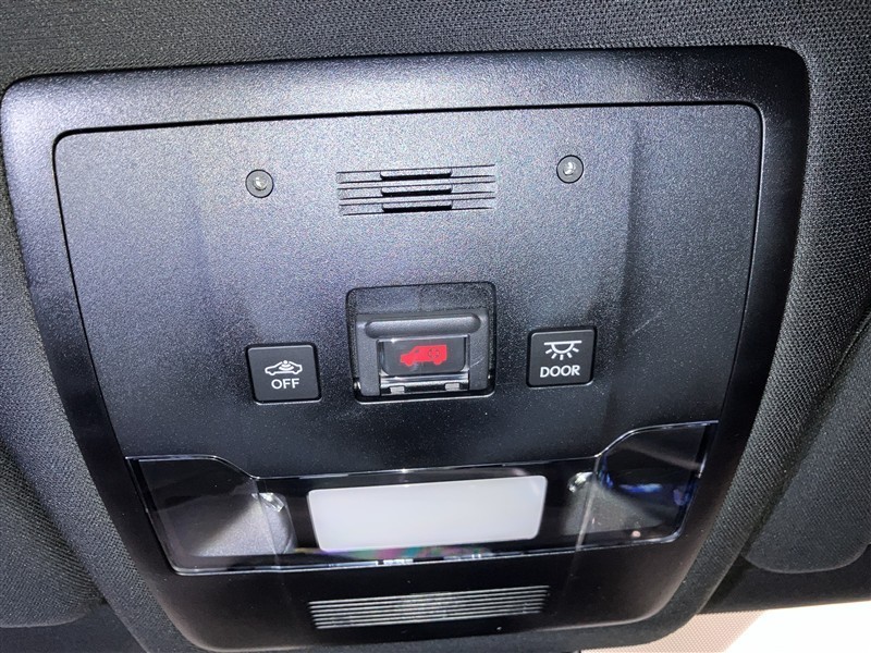 天井にフロントインテリアランプスイッチ/ドア連動スイッチ・パーソナルランプスイッチ・侵入センサーOFFスイッチ・ヘルプネットスイッチパネルが付いています。