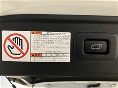 バックドアの底部にパワーバックドアとイージークローザーの取り扱いに関する説明と注意を記入したステッカーが貼ってあります。