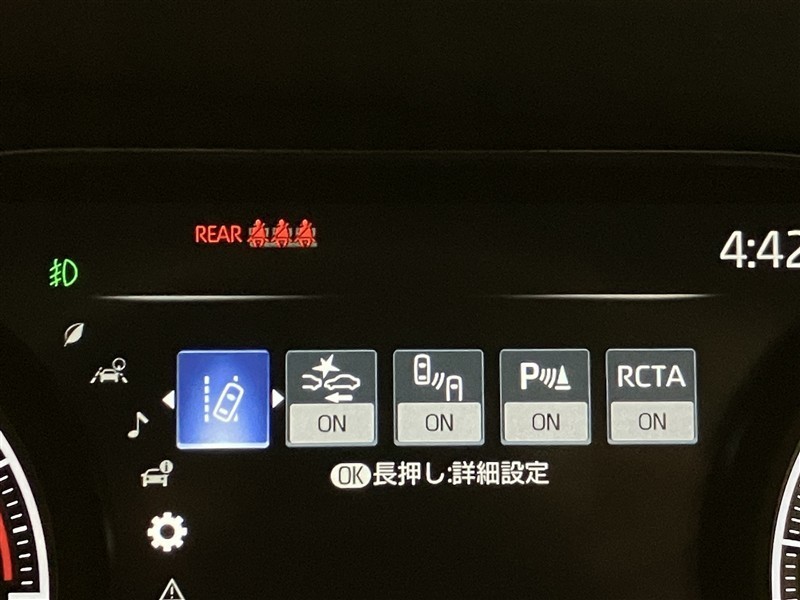 レーダークルーズコントロール(全車速追従機能付)付きです。車速に応じて追従支援してくれるので、ロングドライブも快適です。詳細は販売店スタッフまでおたずねください。