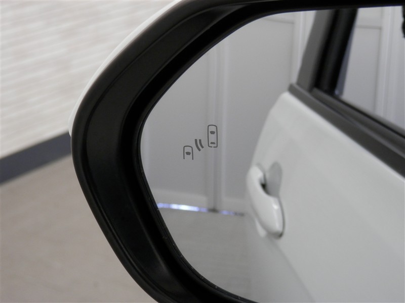 車線変更時などに、ドアミラーでは確認しにくい後側方エリア(ブラインドスポット)に存在する車両をレーダーで検知。警告サインをドアミラー等に表示することで、運転者に注意喚起する機能。