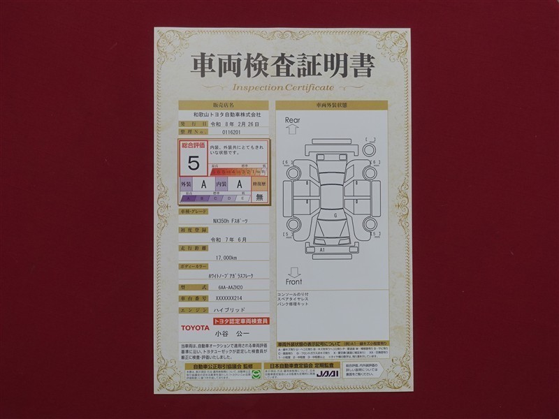 日本自動車査定協会の監査確認証付きです。ご安心してご検討下さい。