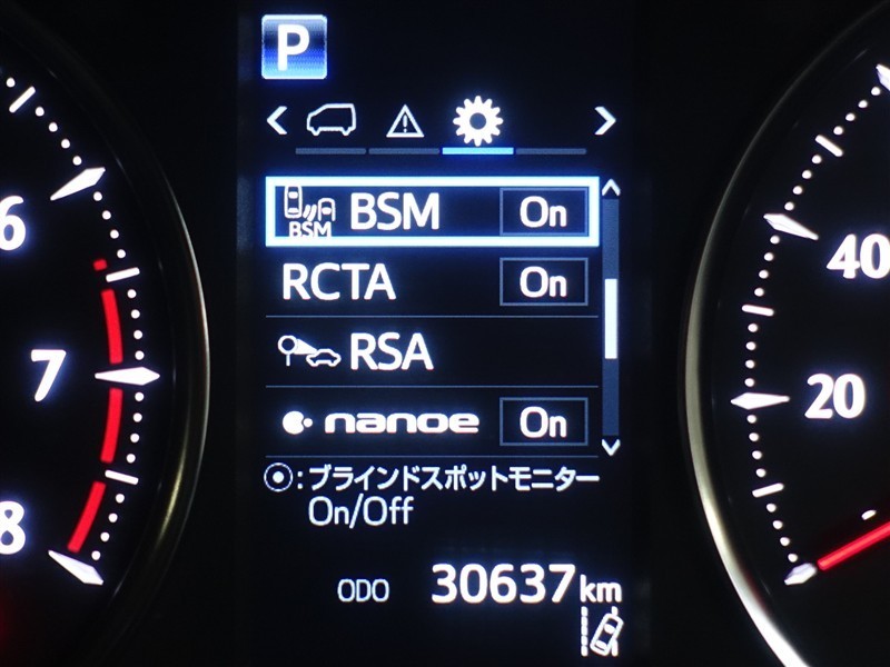ブラインドスポットモニターを装備しております!隣車線を走る車をレーダーで検知し、インジケーターが点灯します☆確認しにくい後側方エリアに存在する車両に加え、急接近してくる車両も検知してくれます♪