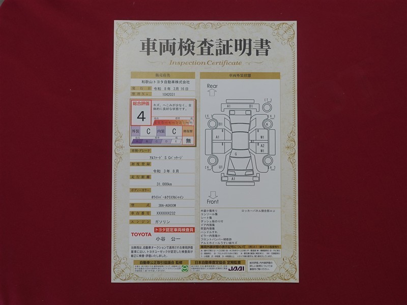 日本自動車査定協会の監査確認証付きです。ご安心してご検討下さい。