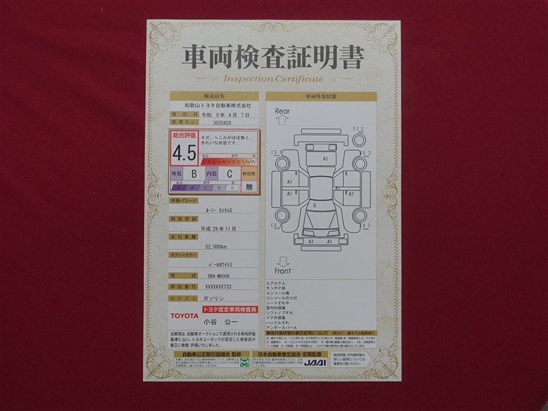 日本自動車査定協会の監査確認証付きです。ご安心してご検討下さい。