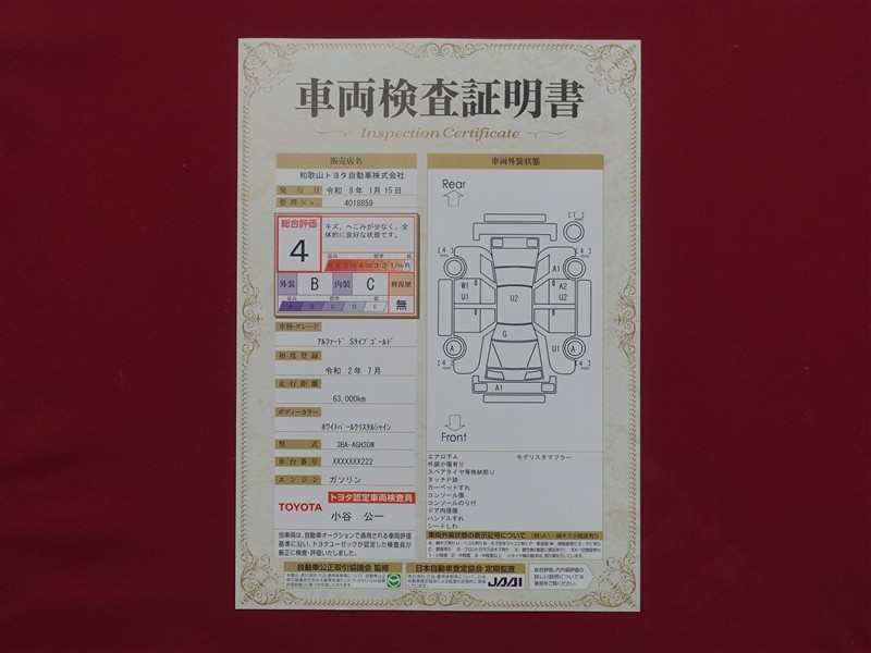 日本自動車査定協会の監査確認証付きです。ご安心してご検討下さい。