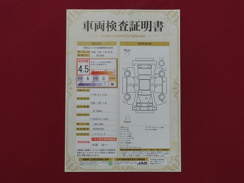 日本自動車査定協会の監査確認証付きです。ご安心してご検討下さい。