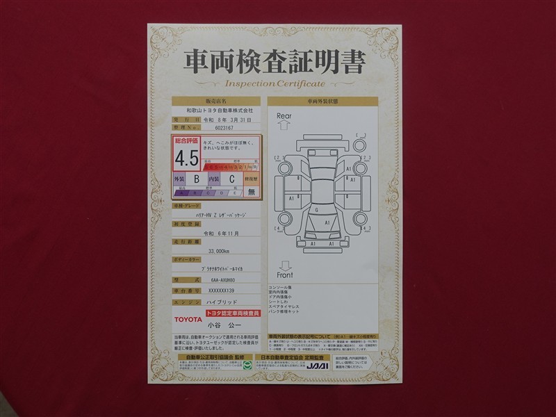 日本自動車査定協会の監査確認証付きです。ご安心してご検討下さい。