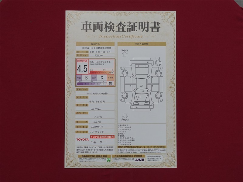 日本自動車査定協会の監査確認証付きです。ご安心してご検討下さい。