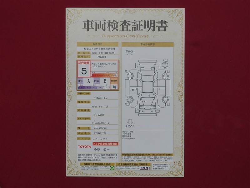日本自動車査定協会の監査確認証付きです。ご安心してご検討下さい。