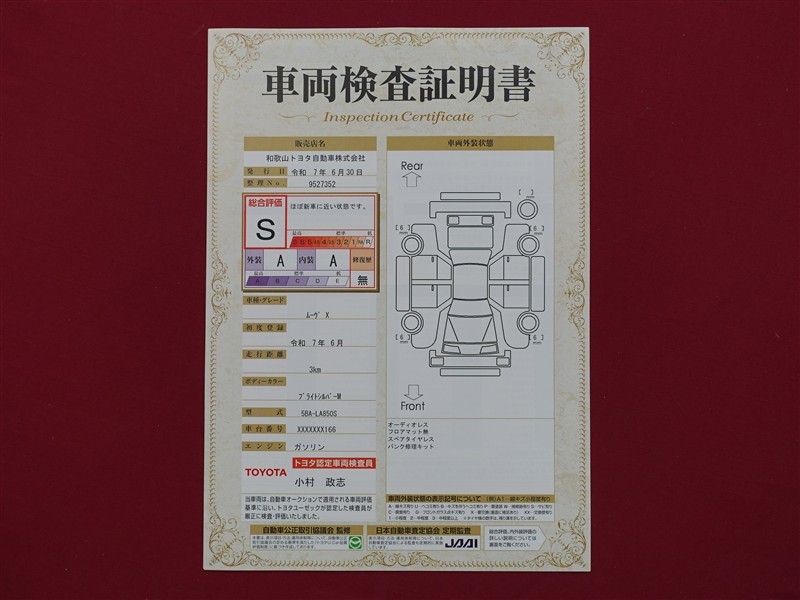 日本自動車査定協会の監査確認証付きです。ご安心してご検討下さい。
