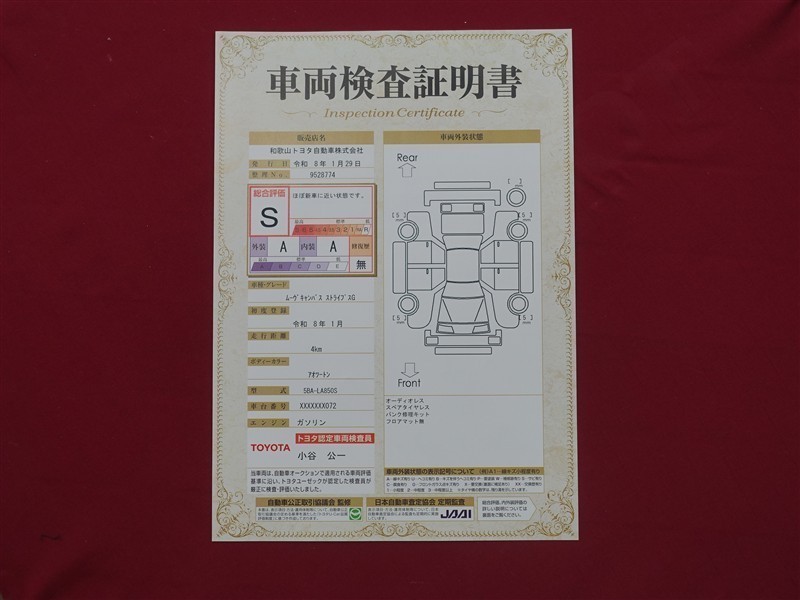 日本自動車査定協会の監査確認証付きです。ご安心してご検討下さい。