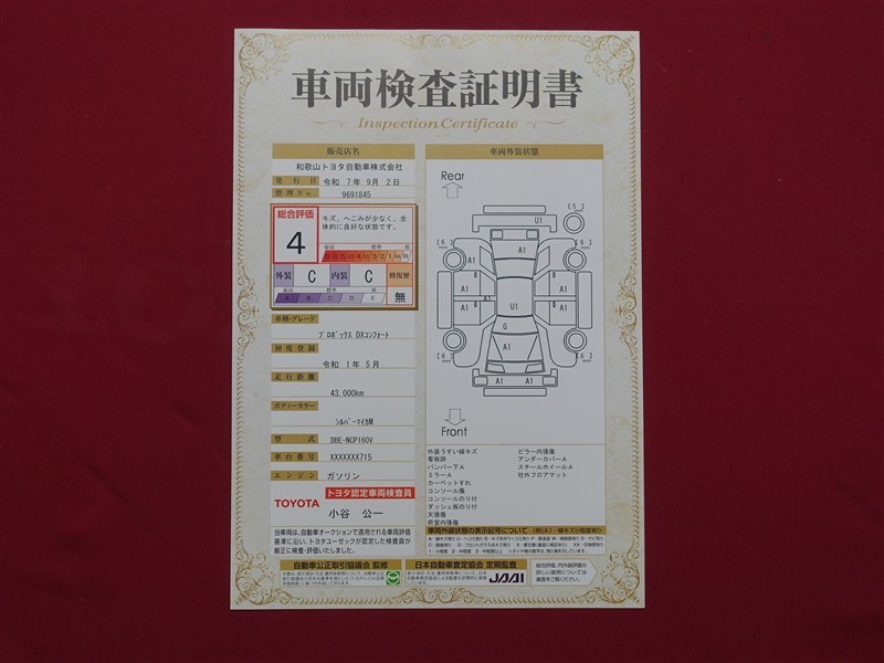 車両検査証明書付きで車の状態が一目でわかります♪