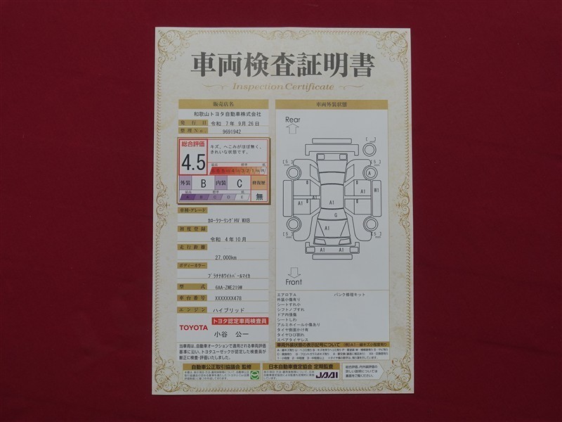 日本自動車査定協会の監査確認証付きです。ご安心してご検討下さい。