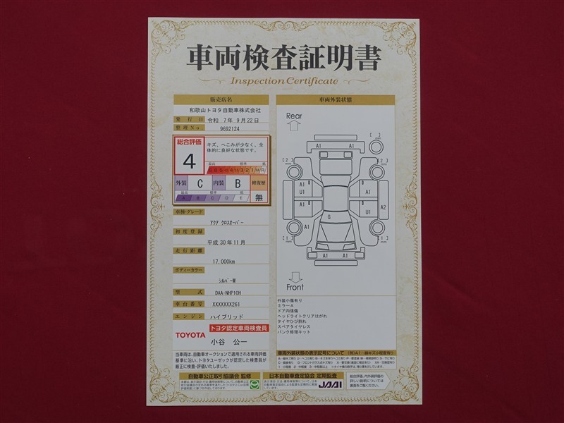 車両の総合評価は4点となり、全体的にきれいなお車になります。