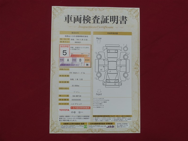 保証付:ロングラン保証1年<走行距離無制限> +ハイブリッド保証<保証期間は初度登録年月から10年目まで、もしくは3年間のいずれか長い方。但し走行距離20万キロまで>