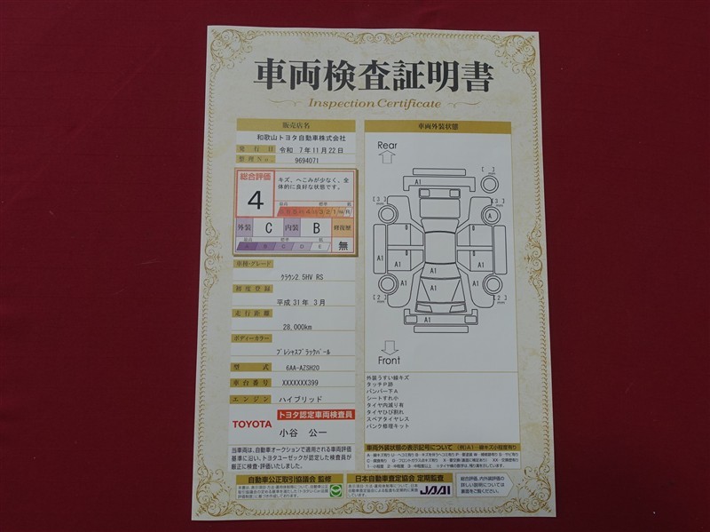 こちらのクラウンの総合評価は4点でキズ、へこみが少なく、全体的に良好な状態です