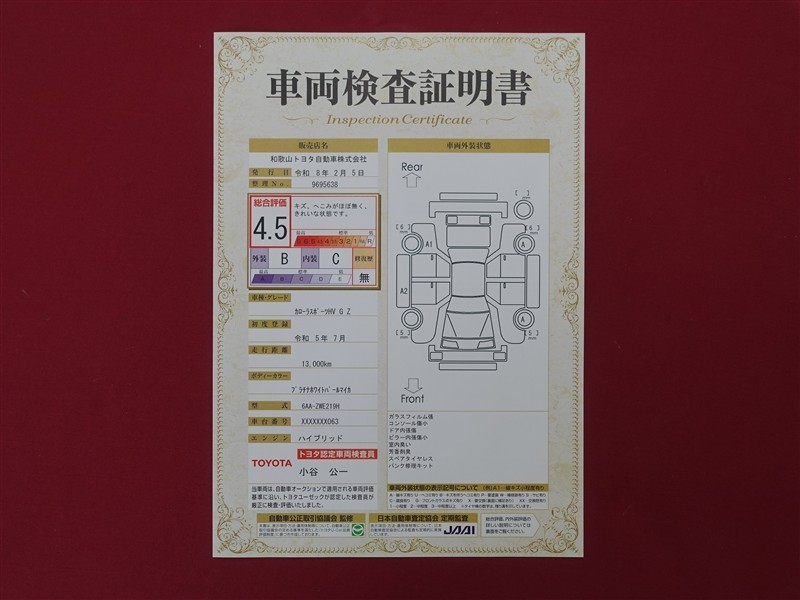 日本自動車査定協会の監査確認証付きです。ご安心してご検討下さい。