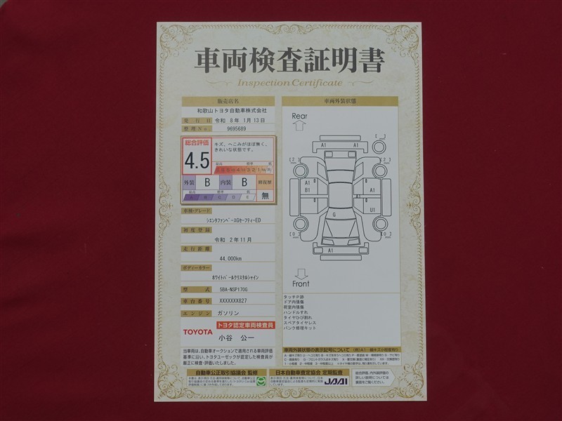 日本自動車査定協会の監査確認証付きです。ご安心してご検討下さい。