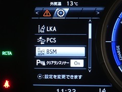 車線変更時などに、ドアミラーでは確認しにくい後側方エリア(ブラインドスポット)に存在する車両をレーダーで検知。警告サインをドアミラー等に表示することで、運転者に注意喚起する機能。
