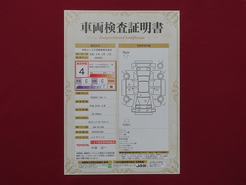 日本自動車査定協会の監査確認証付きです。ご安心してご検討下さい。