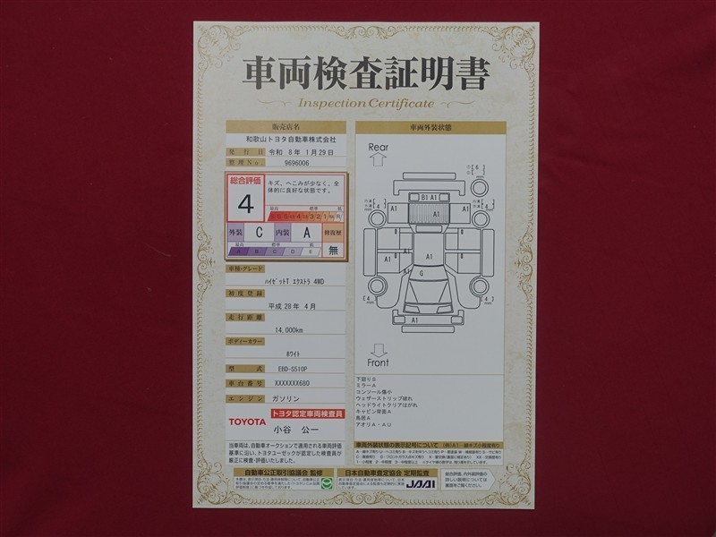 日本自動車査定協会の監査確認証付きです。ご安心してご検討下さい。
