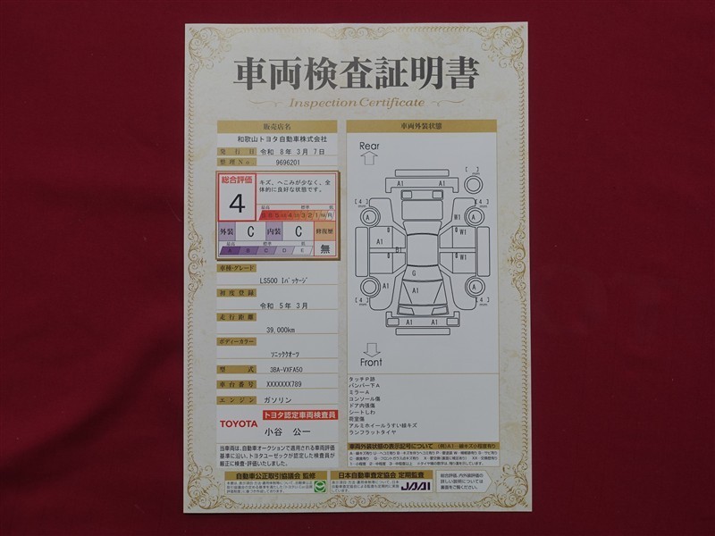 日本自動車査定協会の監査確認証付きです。ご安心してご検討下さい。