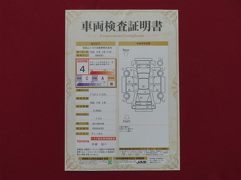日本自動車査定協会の監査確認証付きです。ご安心してご検討下さい。