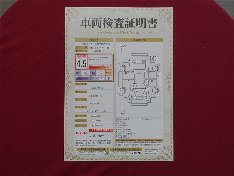 日本自動車査定協会の監査確認証付きです。ご安心してご検討下さい。
