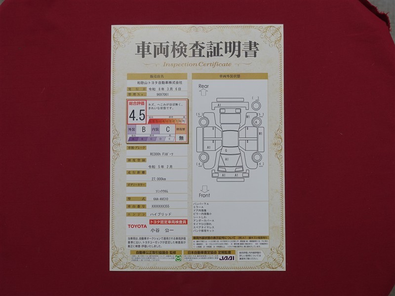 日本自動車査定協会の監査確認証付きです。ご安心してご検討下さい。