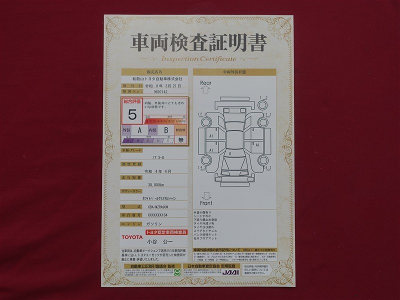 日本自動車査定協会の監査確認証付きです。ご安心してご検討下さい。