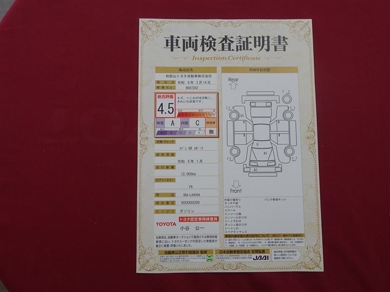 日本自動車査定協会の監査確認証付きです。ご安心してご検討下さい。