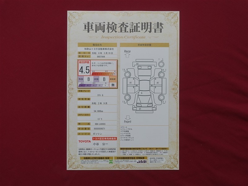 日本自動車査定協会の監査確認証付きです。ご安心してご検討下さい。