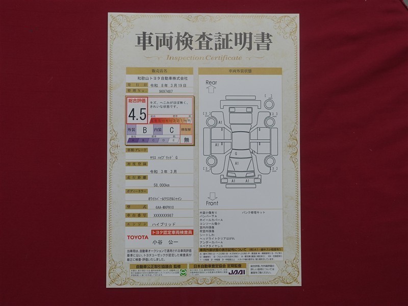 日本自動車査定協会の監査確認証付きです。ご安心してご検討下さい。