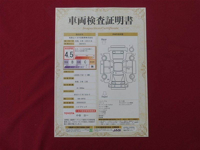 日本自動車査定協会の監査確認証付きです。ご安心してご検討下さい。