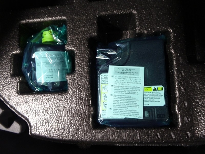 パンク修理キット付き。スペアタイヤの代わりにパンク修理キットが備え付けられています。