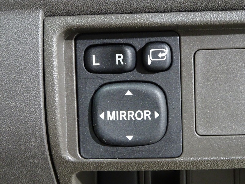 サイドミラーの電動格納&調整スイッチ。見やすい角度に細かく調節が可能です。