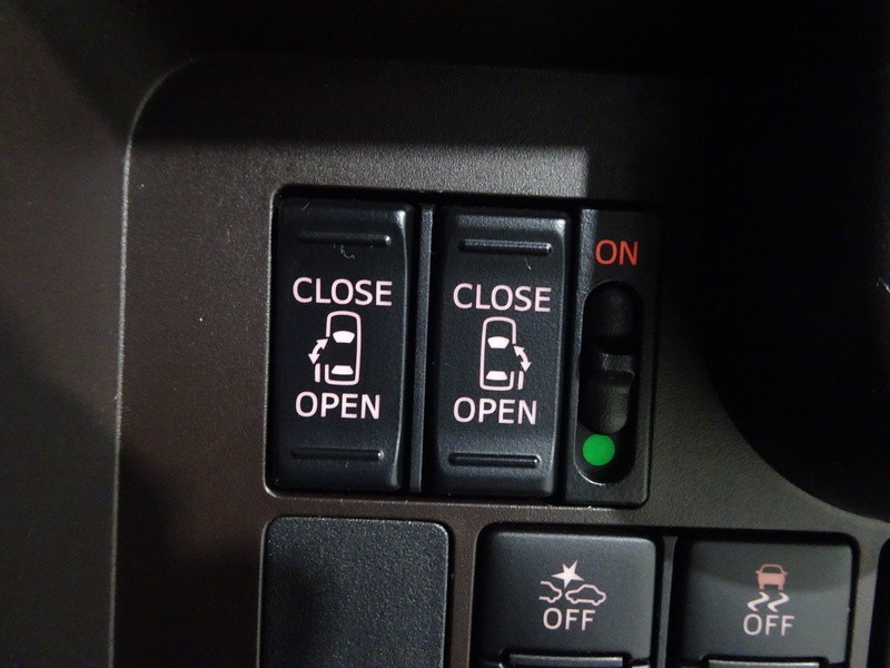狭いスペースでも乗り降り楽々!お子様に安全な挟み込み防止機能付き!両側パワースライドドアの開閉スイッチ。