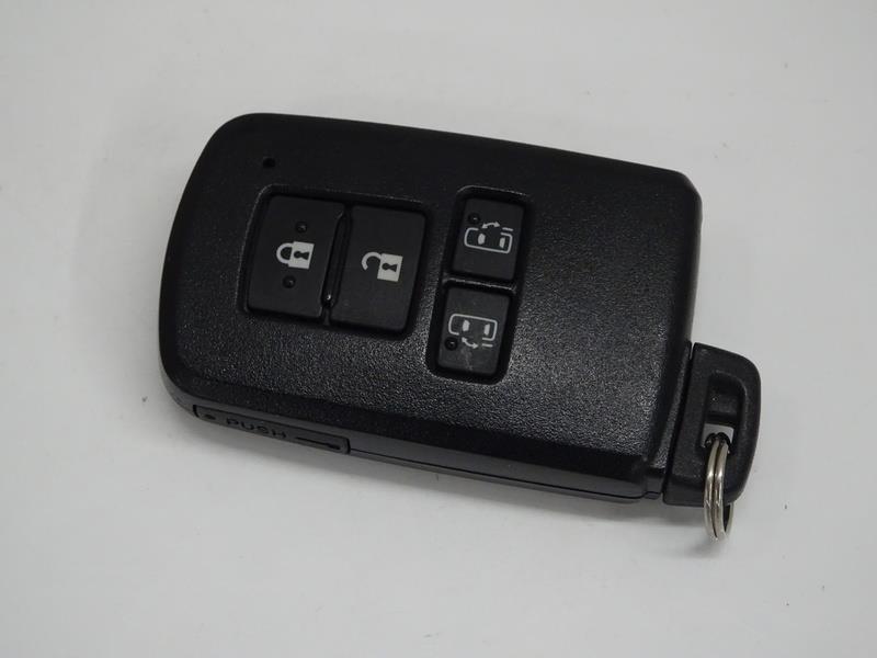 スマートキー。これを持っているだけで、ドアロックの開閉、スライドドアの開閉、エンジン始動がワンタッチ。