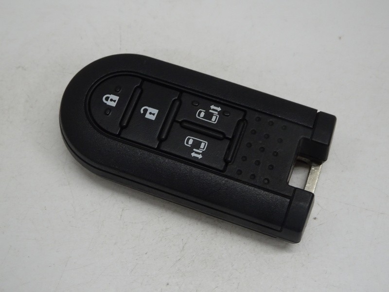 スマートキー。これを持っているだけで、ドアロックの開閉、スライドドアの開閉、エンジン始動がワンタッチ。