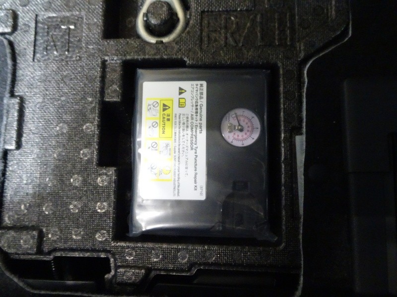 パンク修理キット付き。スペアタイヤの代わりにパンク修理キットが備え付けられています。