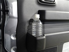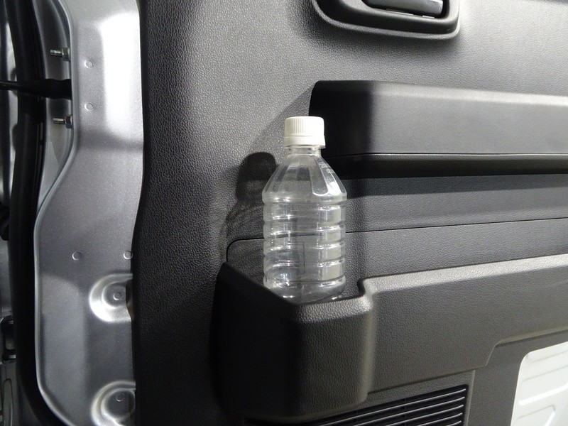 運転席ドアのドリンクホルダーと小物入れ。