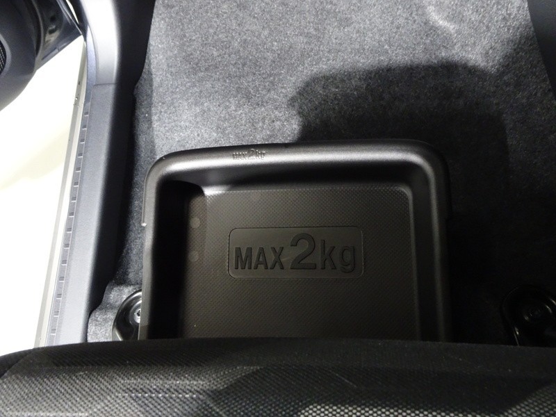 靴などを入れておくのに便利な助手席シート下の収納トレイ。