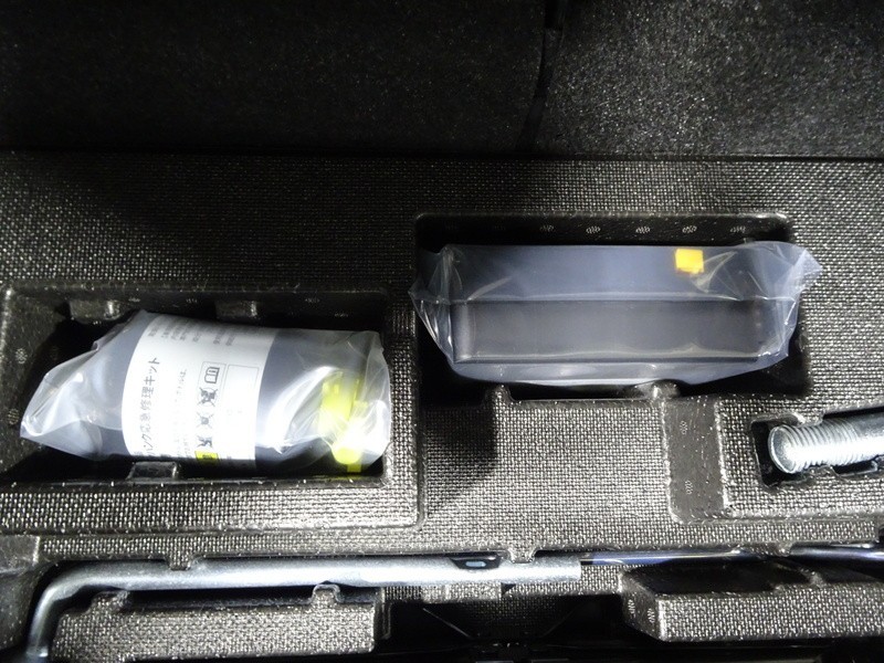 パンク修理キット付き。スペアタイヤの代わりにパンク修理キットが備え付けられています。